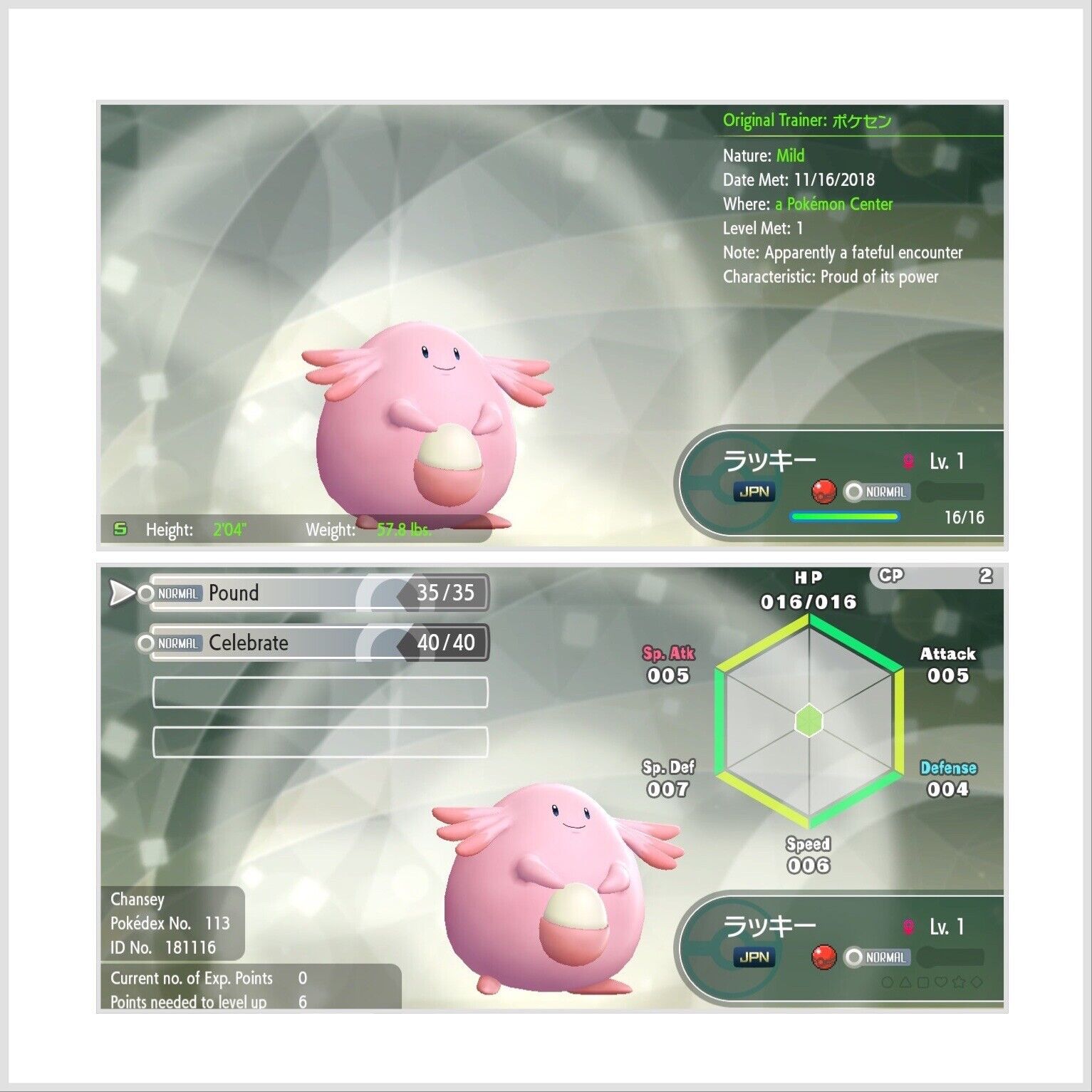 It have 6 perfect IVs. Choose the Customizable option only if you want to edit details such as level, gender, trainer name, or you want to send us a competitive pokepast. We also sell Pokémon for all other Nintendo Switch games. 99.8% positive feedback. Want to buy all the 180 Let's GO Pikachu & Eevee Pokémon in a single order? Just search “Diamond Pearl Living Dex” in the search bar! For more information, contact us before purchasing.