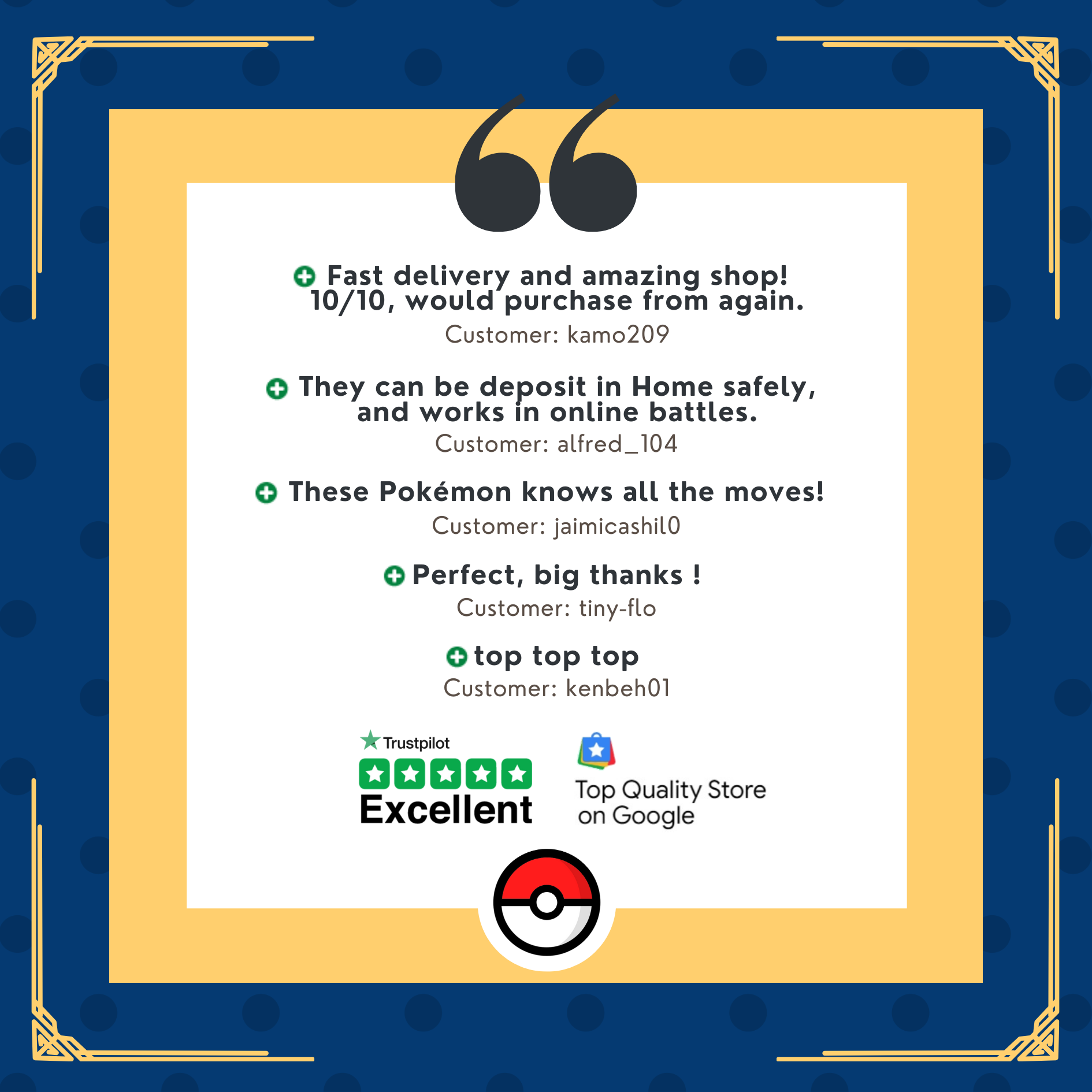 It already knows all legal moves he can learn in this game, and you can change its moveset directly from your game. Choose the Customizable option only if you want to edit details such as level, gender, trainer name, or you want to send us a competitive pokepast. We also sell Pokémon for all other Nintendo Switch games. 99.8% positive feedback. Want to buy all the 900 Scarlet & Violet Pokémon in a single order? Just search “Scarlet Violet Living Dex” in the search bar! For more information, contact us before purchasing.