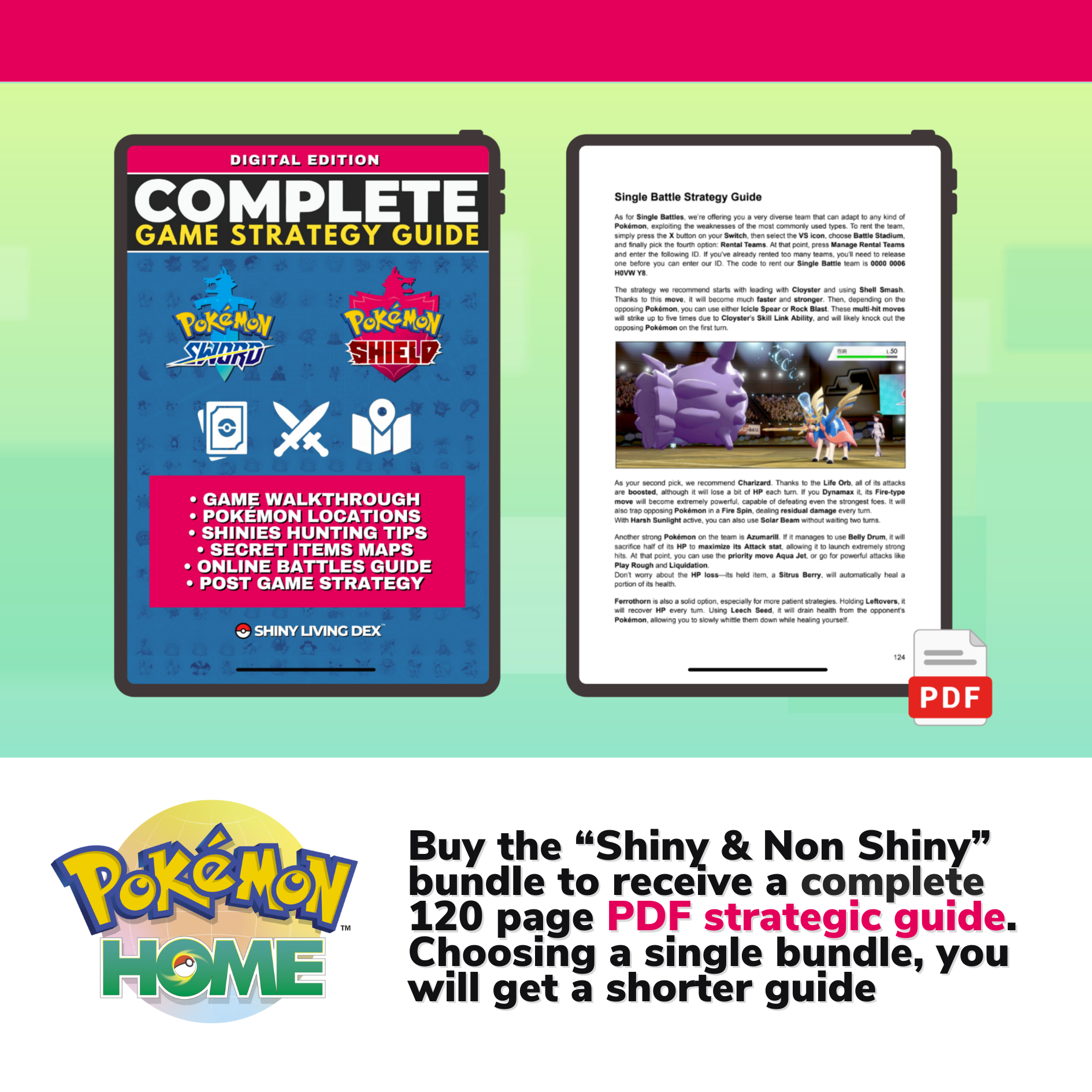 Purchase the Living Dex and then decide if send us your Nintendo username and password or procede to the login by yourself. We’ll transfer the entire Living Dex into your Home in few minutes. You can change your password after the transfer is complete, or set a temporary password before the transfer. Anyway, we won't ask you to turn off the 2-steps verification as other sellers do: you will keep the control of your account during the whole transfer process. Also we won’t keep your personal datas. Don’t take our word for it: check out our positive reviews! The purchase refers to the strategic guide only, the included Living Dex is a free bonus. By purchasing, the customer understands that payment is for the guide itself, while the Living Dex included is a gift from us.