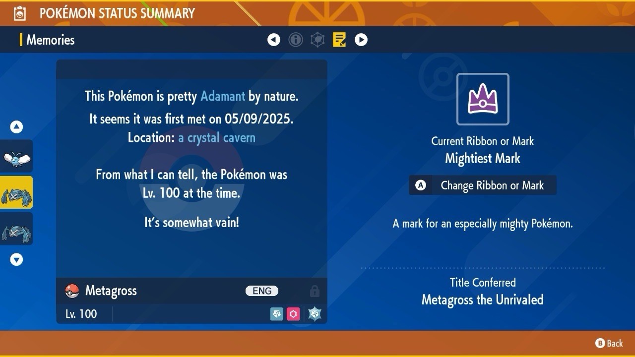Metagross Unrivaled Tera Raid Event Mightiest Mark 6 IV Pokémon Scarlet Violet