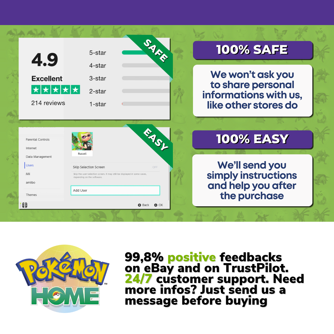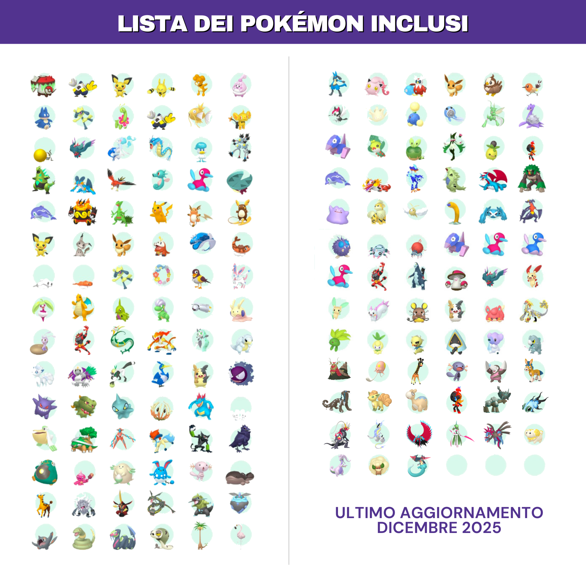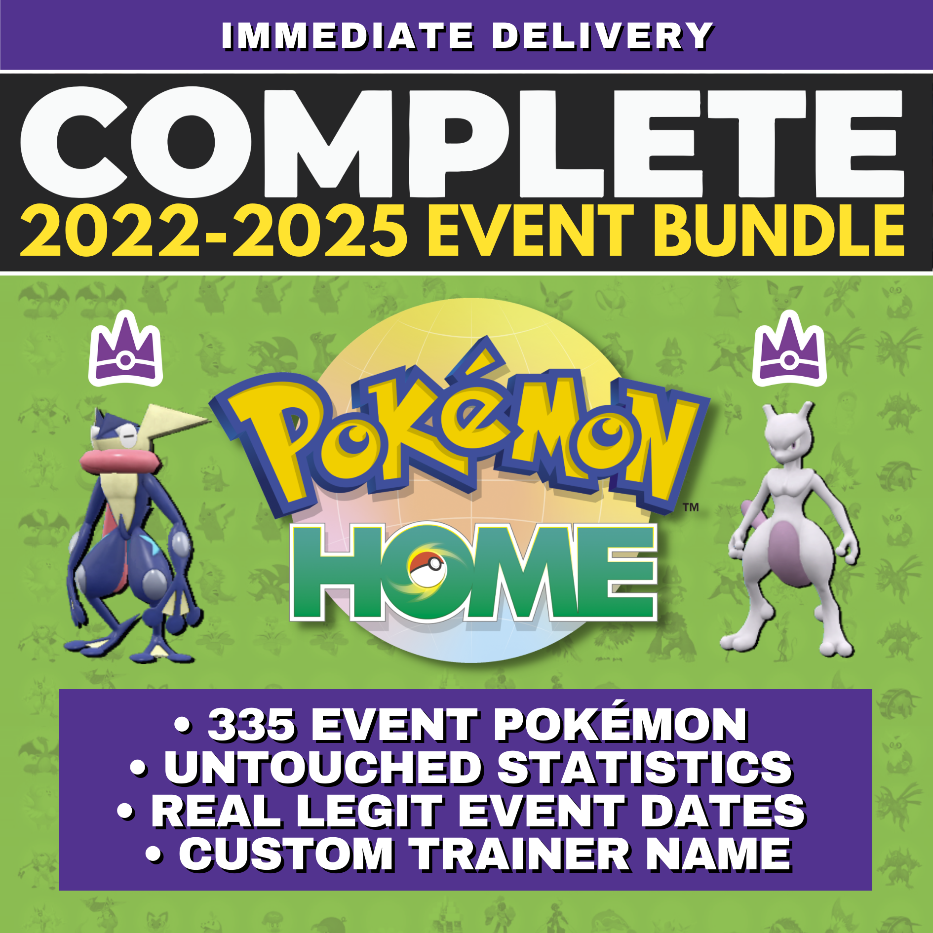 Only COMPLETE event Pokémon collection (2022-2023-2024-2025) available on the web. The pack is updated weekly, to include all event Pokémon released to date. Pokémon are compatible with Scarlet and Violet, but also with previous Nintendo Switch games. For the complete list of all the Pokémon included in the pack, see below.
