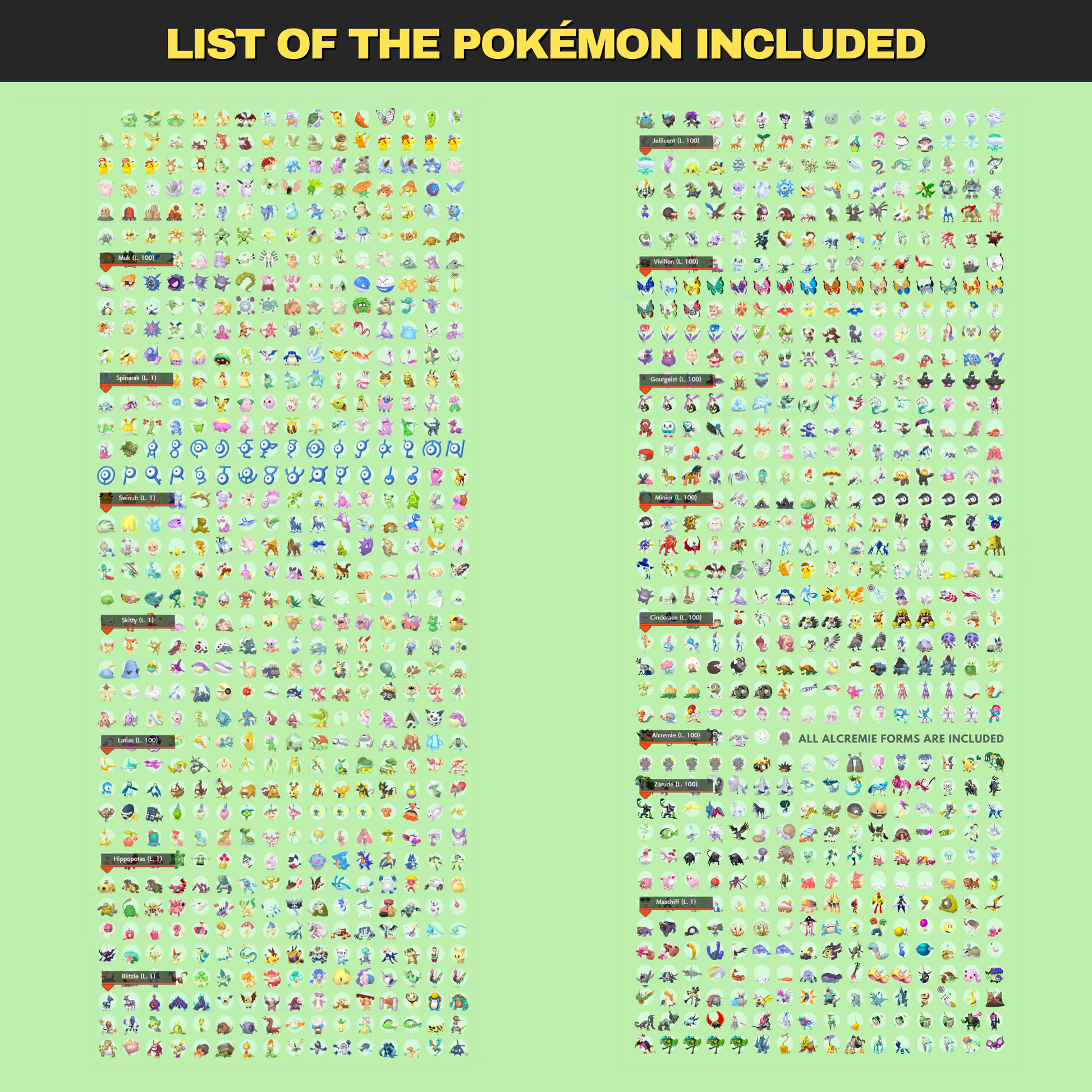 The most complete Pokémon guide available on the web — and it even includes a free Living Dex: a collection with every Pokémon from every generation released so far. That’s over 1,300 Pokémon, from Bulbasaur to Pecharunt, all ready to use from the very start of your adventure. The bundle is also future-proof: the Pokémon in it are compatible with all current Nintendo Switch Pokémon games (Switch 1 & 2), as well as the upcoming titles Pokémon Champions and Pokémon Legends Z-A.