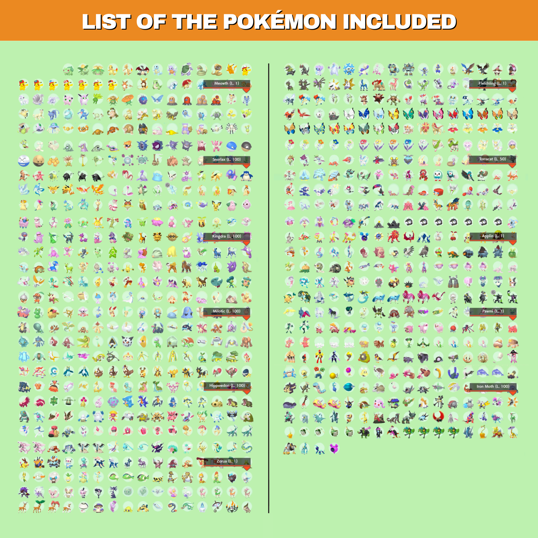 ⭑ All Pokémon are 6 IV. The level 100 ones got 2 EV hyper trained and competitive moveset. They have Custom level sets as explained in the images. Those that don't evolve (as Miraidon) are level 100 by default.